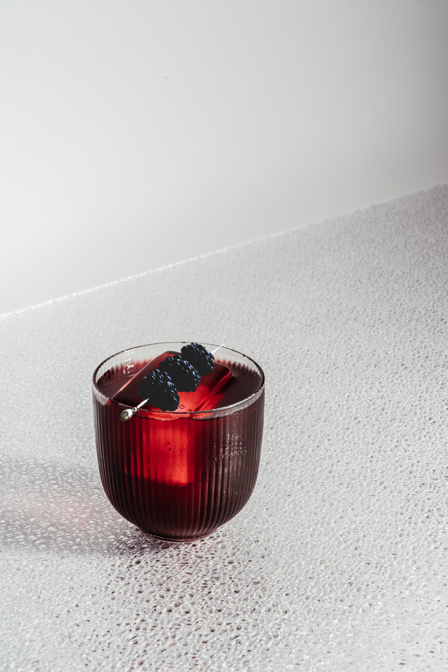 Gently shake the bottle of Berry Bash and pour it over ice cubes. Finish by garnishing with a skewer of blackberries.
